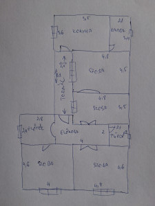 Ez a tágas otthon 4 szobával (22, 22, 18, 17 nm-es), egy konyhával és egy kamrával, valamint egy fürdőszobával rendelkezik. Az első és a hátsó bejárat is egy szélvédett, fedett tornácról nyílik. A két hátsó szoba boltívvel kapcsolódik egymáshoz, az egyiknek az előtérből, a másiknak a konyhából van külön bejárata. Ilyen boltívvel találkozunk, a főbejárat utáni előszobánál, és előtérnél is. Ezeket az összenyitott tereket, szükség esetén könnyen, akár gipszkartonnal le lehet zárni. Fordítva, az egybenyitásuk lenne nagyobb költség, mert az falbontással jár.
